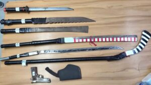 คนร้ายกลุ่มนี้และสามารถจับกุมตัวผู้ต้องหาได้แก่ นาย บอส นายธี และนายโชค พร้อมตรวจยึดของกลางเป็นอาวุธมีดพร้า มีดสปาต้า มีดสั้นและยาวจำนวน 6 เล่ม และอาวุธปืนเถื่อน อีก1 กระบอก