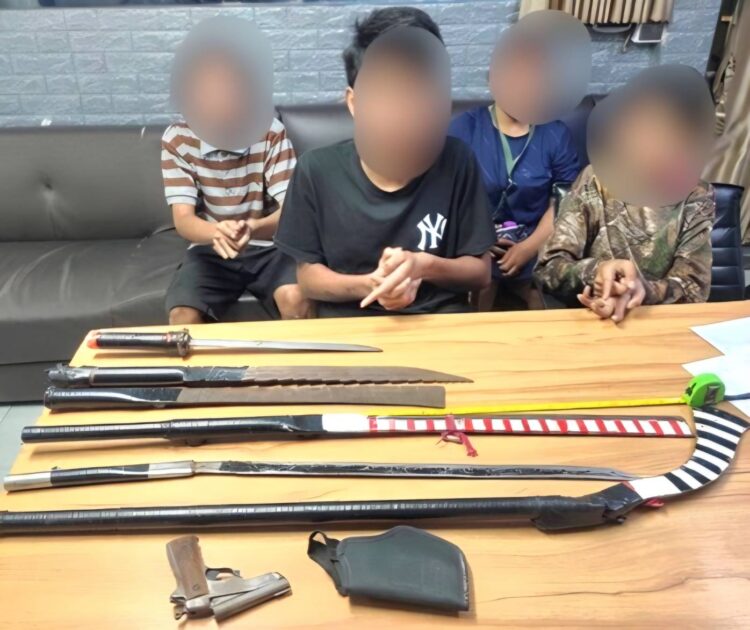 พร้อมปืนเถื่อน 1กระบอก มีด พร้า สปาต้า อีก 6เล่มวันที่ 27 พฤศจิกายน พ.ศ.2568 พล.ต.ต.ธีระเดช อธิภัคกุล ผู้บังคับการตำรวจภูธรจังหวัดสมุทรสาคร ได้เปิดเผยกับผู้สื่อข่าวว่า ชุดสืบสวนสภ.กระทุ่มแบนจังหวัดสมุทรสาคร ได้จับกุมกลุ่มแก๊งที่อ้างตัวเป็นเด็กตำรวจ ใช้มีดฟันเยาวชนชายวัย17ปีจนมือเกือบขาดได้แล้ว