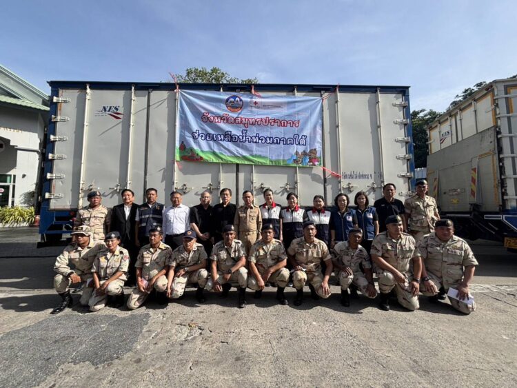 .ผู้ว่าราชการจังหวัดสมุทรปราการ ปล่อยขบวนรถนำสิ่งของเครื่องอุปโภค บริโภค และสิ่งของจำเป็นในการดำรงชีวิตประจำวัน ที่ชาวสมุทรปราการ บริจาคผ่านสำนักงานเหล่ากาชาดจังหวัดสมุทรปราการ ส่งต่อธารน้ำใจช่วยเหลือผู้ประสบอุทกภัยในจังหวัดภาคใต้