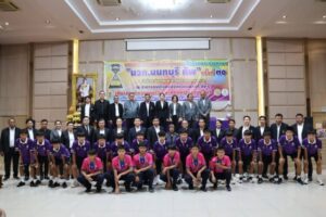 “มวก.นนทบุรี คัพ” ครั้งที่ 30 พร้อมด้วย นายดิเรก ถึงฝั่ง ผู้ริเริ่มการแข่งขันฯ พันตำรวจเอก ธงชัย เย็นประเสริฐ นายกองค์การบริหารส่วนจังหวัดนนทบุรี นายณัฐภูมิ นนทสิริกุล ปลัดองค์การบริหารส่วนจังหวัดนนทบุรี นายสัมฤทธิ์ ด้วงโสน ประธานชมรมฟุตบอลจังหวัดนนทบุรี และนายสุรศักดิ์ จาดบุญนาค นายกสมาคมกีฬาจังหวัดนนทบุรี
