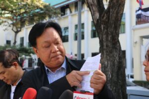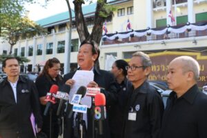 ตัวแทนประชาชน กอ.รมน. กล่าวว่า สาเหตุ ที่มายังกระทรวงคมนาคมวันนี้เนื่องจากมี ผู้เสียหายซึ่งเป็นอดีตพนักงานการท่าเรือแห่งประเทศไทย ที่ไม่ได้รับเงิน บำเหน็จบำนาญ ถูกทอดทิ้ง หลังเกษียณ และมีการชักชวนให้เข้ากองทุนฯ แต่กลับไม่ได้รับเงินหลังเกษียณ