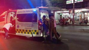 ที่เกิดเหตุอยู่บริเวณข้างอาคารพาณิชย์เลขที่ 192 ถนนประชาอุทิศ เจ้าหน้าที่พบผู้ได้รับบาดเจ็บเป็นชาย 1 ราย ทราบชื่อต่อมาคือ นายไซ คำ เฮน อายุ 24 ปี สัญชาติลาว นอนหงายอยู่ในพุ่มไม้ สภาพไม่สวมเสื้อ สวมกางเกงขายาวสีดำ ไม่สวมรองเท้า มีบาดแผลฉกรรจ์เปิดขนาดใหญ่บริเวณหลังหัวเข่าข้างขวา และกระดูกต้นขาขวาหักผิดรูป อาการสาหัส อาสาสมัครกู้ภัยจึงให้การปฐมพยาบาลเบื้องต้น ก่อนส่งต่อให้ทีม ALS นำตัวส่งโรงพยาบาลมหาชัย 2 เป็นการเร่งด่วน