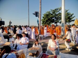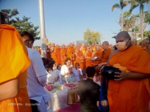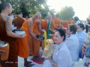 ในพิธีพุทธศาสนิกชนได้พร้อมใจกันแสดงตนเป็นพุทธมามกะ อาราธนาศีล 5 เจริญสมาธิภาวนาถวายเป็นพระราชกุศลแด่ สมเด็จพระนางเจ้าสิริกิติ์ พระบรมราชินีนาถ พระบรมราชชนนีพันปีหลวง ประธานในพิธีนำถวายไทยธรรมเป็นสังฆทาน ประธานสงฆ์ได้เผดียงอาหารตักบาตรเพื่อนำไปมอบให้คณะสงฆ์ 323 วัด และเจ้าหน้าที่ทหารตำรวจในพื้นที่ 4 จังหวัดภาคใต้ อีกทั้งช่วยเหลือบรรเทาทุกข์ผู้ประสบภัยในทุกภูมิภาคของประเทศไทย จากนั้นคณะสงฆ์กว่า 10,000 รูปแปรแถวรับบิณฑบาต