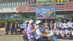 เมื่อวันที่ 25 ธันวาคม 2568 ที่สถานีตำรวจภูธรเมืองกาญจนบุรี ได้จัดโครงการ “แจกหมวกนิรภัยด้วยใจ สร้างความปลอดภัยประชาชน” เพื่อส่งเสริมวินัยจราจรและสร้างความปลอดภัยให้กับเด็กนักเรียนและประชาชนผู้ใช้รถใช้ถนนในพื้นที่