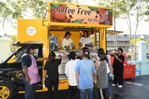 ส่งเสริมการมีส่วนร่วมของประชาชนในการบริหารจัดการขยะ และนำรายได้จากการคัดแยกขยะกลับมาแบ่งปันความสุขให้กับชุมชนตำบลบ้านใหม่และพื้นที่ใกล้เคียง และได้รับการสนับสนุนจาก ดร.ฤทธิรงค์ อินทรจินดา เพื่อนำกาแฟและน้ำดื่มมาให้กับประชาชนที่มารับสิ่งของช่วยเหลือ