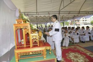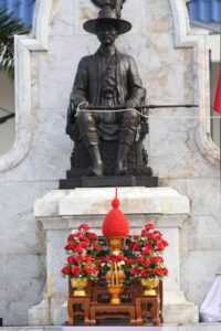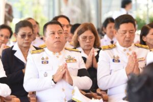 วันนี้ (28 ธันวาคม 2568) เวลา 08.30 น. ณ บริเวณพระบรมราชานุสาวรีย์สมเด็จพระเจ้าตากสินมหาราช ที่ว่าการอำเภอบางใหญ่ จังหวัดนนทบุรี นายเชษฐา โมสิกรัตน์ ผู้ว่าราชการจังหวัดนนทบุรี เป็นประธานในพิธีเจริญพระพุทธมนต์และพิธีวางพานพุ่มดอกไม้ถวายราชสดุดีสมเด็จพระเจ้าตากสินมหาราช ประจำปีพ.ศ. 2568 พร้อมด้วยนายสุรชัย โคตรบุตรดี นายอำเภอบางใหญ่ หัวหน้าส่วนราชการ ข้าราชการ กิ่งกาชาดอำเภอบางใหญ่ และประชาชนชาวนนทบุรี เข้าร่วมพิธีเพื่อแสดงความจงรักภักดีและน้อมรำลึกถึงพระมหากรุณาธิคุณอันยิ่งใหญ่