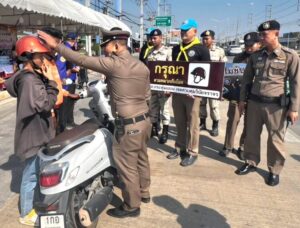 รณรงค์ให้ผู้ขับขี่และผู้โดยสารรจักรยานยนต์สวมหมวกนิรภัย เพื่อลดความรุนแรงของการบาดเจ็บ และเสียชีวิตจากอุบัติเหตุ ของผู้ขับขี่และผู้โดยสารรถจักรยานยนต์ช่วง7วันอันตราย