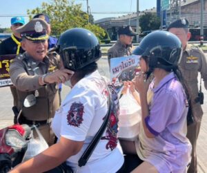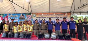 ผกก.สภ.กระทุ่มแบน พ.ต.ท.ชุมพร ฉัตร์สงวนชัยรองผกก.พร้อมเจ้าหน้าที่ตำรวจจราจรร่วมกับ นายพิรุณโรจน์นาคดนตรี นายอำเภอกระทุ่มแบน นายศักดาพจน์ จันทร์ภิวัฒน์ปลัดอำเภอพร้อมกำลังจากฝ่ายปกครอง ร่วมกันจัดโครงการ “แจกหมวกนิรภัยด้วยใจ สร้างความปลอดภัยประชาชน”
