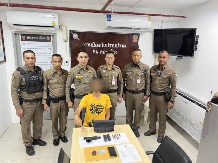 เจ้าหน้าที่ตำรวจชุดปฏิบัติการ 223 สน.ดอนเมือง เข้าควบคุมตัวชายต้องสงสัยพกพาอาวุธปืน ภายในร้าน AZC เลขที่ 1 ถนนสรงประภา แขวงดอนเมือง เขตดอนเมือง กรุงเทพมหานคร หลังศูนย์วิทยุแจ้งเหตุให้เข้าตรวจสอบบุคคลมีพฤติการณ์น่าสงสัย