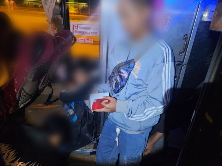 จากการตรวจค้นภายในรถ พบแรงงานต่างด้าวสัญชาติเมียนมาจำนวน 12 คน นั่งปะปนกับผู้โดยสาร โดยซุกซ่อนบริเวณด้านหลังคนขับและพื้นทางเดินรถ ไม่มีตั๋วโดยสาร ตรวจสอบพบมีเอกสารแสดงตนเพียง 6 คน อีก 6 คนไม่สามารถแสดงเอกสารได้
