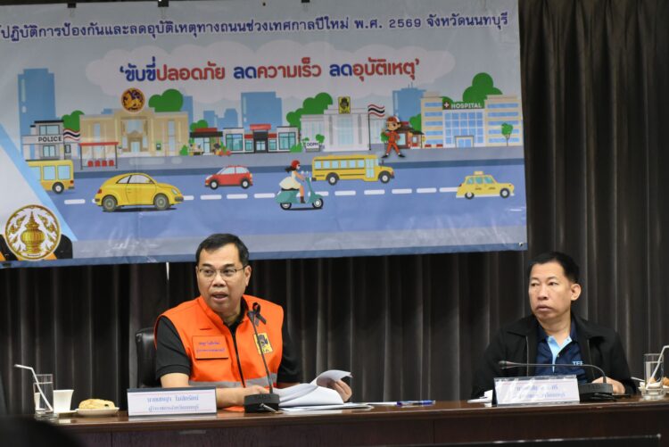กรัตน์ผู้ว่าราชการจังหวัดนนทบุรี เป็นประธานการประชุมคณะกรรมการศูนย์ปฏิบัติการป้องกันและลดอุบัติเหตุทางถนนช่วงเทศกาลปีใหม่ พ.ศ. 2569 จังหวัดนนทบุรี โดยมี นายอภิชัย อร่ามศรี รองผู้ว่าราชการจังหวัดนนทบุรี ทหาร ตำรวจ อำเภอทุกอำเภอ หัวหน้าส่วนราชการ และเจ้าหน้าที่ที่