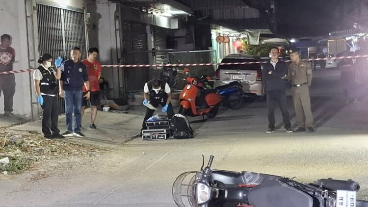 ที่เกิดเหตุพบศพชายไทย 1 ราย อายุ 41 ปี อาชีพช่างแอร์ นอนหงายเสียชีวิตจมกองเลือดอยู่กลางถนน สวมเสื้อยืดแขนสั้นสีดำ กางเกงยีนส์ขาสามส่วนสีน้ำเงิน มีรอยสักลายมาเฟียทั่วร่างกาย ตรวจพบบาดแผลถูกยิงด้วยอาวุธปืนขนาด 9 มม. เข้าศีรษะและลำตัวหลายนัด