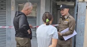 จากการสอบถามเพื่อนบ้าน อายุ 53 ปี เล่าว่า ผู้ตายอาศัยอยู่กับแม่บ้านชาวลาว 2 คน ได้ประมาณ 1 ปีกว่า ก่อนเกิดเหตุเมื่อวานนี้ ช่วงประมาณ 6 โมงเย็น ตนเห็นแม่บ้าน เดินออกมาจากบ้านพร้อมถุงผ้า จึงสอบถามว่าจะไปไหน ซึ่งแม่บ้านบอกว่า โดนป้าหมูไล่ออก และจะเปลี่ยนแม่บ้านใหม่ ส่วนสาเหตุมาจากป้าหมูหาว่านอนเยอะไม่ทำงาน จากนั้นตนเองก็ไม่ได้สนใจอะไรเพราะเห็นว่าเป็นเรื่องภายในบ้าน