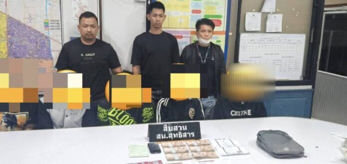 ต่อมาได้พบชายต้องสงสัยมีลักษณะรูปพรรณตรงตามสายลับแจ้งอยู่บริเวณปากซอยรัชดา 16 จึงไปตรวจสอบพบผู้ถูกต้องหาที่ 1-2 มีลักษณะพิรุธต้องสงสัยและมีพฤติการณ์หลบหนี ก่อนทำการจับกุม ผลการตรวจค้นพบสำเนาสลิปโอนเงินของ น.ส.พิมพรรณ ไปยังนายสรรพวิท จำนวนเงิน 290,000 บาท เมื่อสอบถามผู้ต้องหาทั้งสองว่าวิ่งหนีเพราะเหตุใด ผู้ต้องหารับว่าได้เสพยาเสพติดมา เมื่อพบเห็นตำรวจจึงวิ่งหนี โดยตนทั้งสองได้รับจ้างเปิดบัญชีม้าให้ นายปอ ซึ่งจะคุยผ่านแอปพลิเคชั่นไลน์ จึงได้ควบคุมตัว มาที่ สน.สุทธิสาร เพื่อทำการขยายผลและทำการตรวจหาสารเสพติดในปัสสาวะ