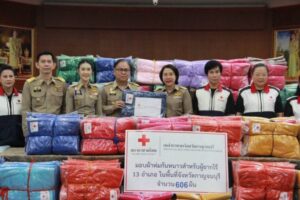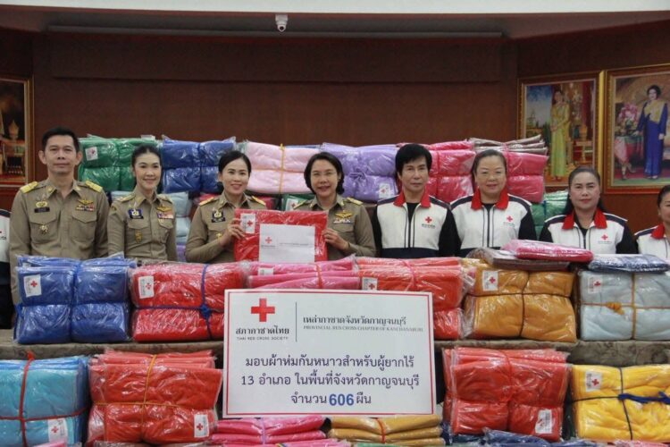 กาชาดจังหวัดกาญจนบุรี เป็นประธานในกิจกรรมส่งมอบผ้าห่มกันหนาว จำนวน 606 ผืน เพื่อบรรเทาทุกข์ให้กับประชาชนที่ประสบภัยหนาวในพื้นที่จังหวัดกาญจนบุรี พร้อมด้วย นางสาวกมลชญา ประเสริฐสิน ปลัดจังหวัดกาญจนบุรี/เลขานุการเหล่ากาชาดจังหวัดฯ นายกิรติ จิณแพทย์ จ่าจังหวัดกาญจนบุรี/ผู้ช่วยเลขานุการเหล่ากาชาดจังหวัดฯ และกรรมการ/สมาชิกเหล่ากาชาดจังหวัด