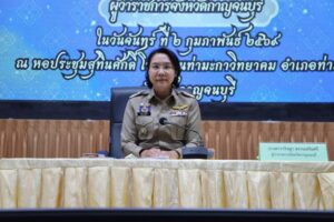 ในการนี้ นางสาววริษฐา สงวนเสริมศรี ผู้ว่าราชการจังหวัดกาญจนบุรี ได้กำชับการเตรียมความพร้อมสำหรับการเลือกตั้งทุกภาคส่วน เจ้าหน้าที่ต้องทำเป็นเป็นกลาง ดูแลและกำกับอย่างเคร่งครัด พร้อมทั้งกล่าวให้กำลังใจทหารและพี่น้องประชาชนในพื้นที่ชายแดนไทย-กัมพูชา และได้มอบนโยบายและแนวทางการดำเนินงานให้กับส่วนราชการจังหวัดกาญจนบุรี ในภาพรวม 12 นโยบาย ขับเคลื่อนจังหวัด พร้อมสร้างจังหวัดกาญจนบุรี ให้เป็นเมืองน่าอยู่ มีความปลอดภัย และเศรษฐกิจมั่นคงอย่างยั่งยืน ให้ความสำคัญกับการสนองงานพระราชดำริ พัฒนาคุณภาพชีวิตและสร้างรายได้ ส่งเสริมการท่องเที่ยว Carbon Neutral และเกษตรอินทรีย์ น้อมนำแนวพระราชดำริ สู่การปฏิบัติ และหลักปรัชญาของเศรษฐกิจพอเพียง พร้อมทั้ง แก้ไขปัญหาความเดือดร้อนของประชาชน เน้นการทำงานเชิงรุกผ่านศูนย์ดำรงธรรม การปราบปรามมิจฉาชีพทางออนไลน์ (แก๊งคอลเซ็นเตอร์) ภายใต้สโลแกน “ไม่เชื่อ ไม่รีบ ไม่โอน” และการให้บริการประชาชนที่สะดวกรวดเร็ว พร้อมยกระดับคุณภาพชีวิต อาชีพ ที่อยู่อาศัย ขับเคลื่อนผ่านกลไก “บำบัดทุกข์ บำรุงสุข” พัฒนาสาธารณสุขเชิงรุก ดูแลกลุ่มเปราะบาง และแก้ไขปัญหาความยากจนในระดับครัวเรือนอย่างยั่งยืน รวมไปถึงมุ่งสู่การเป็นเมืองคาร์บอนต่ำ (Kanchanaburi Low Carbon City) จัดการขยะอย่างมีประสิทธิภาพ และส่งเสริมการใช้เศษวัสดุทางการเกษตรเป็นพลังงานทดแทน และพัฒนาตลาดเกษตรและสินค้าชุมชนด้วยเทคโนโลยี ส่งเสริมการท่องเที่ยวเชิงวัฒนธรรมและอัตลักษณ์เมืองกาญจน์