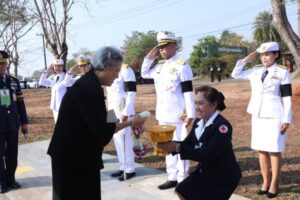 โดยมี นางสาววริษฐา สงวนเสริมศรี ผู้ว่าราชการจังหวัดกาญจนบุรี นายจิโรจน์ กรีดกราย ผู้พิพากษาหัวหน้าคณะชั้นต้นในศาลจังหวัดกาญจนบุรี พลตรี ชนมากรณ์ ภิบาลชนม์ ผู้บัญชาการมณฑลทหารบกที่ 17 พลตำรวจตรี พศวีร์ เรืองภู่ ผู้บังคับการตำรวจภูธรจังหวัดกาญจนบุรี นายทรัท เหลืองสอาด รองผู้ว่าราชการจังหวัดกาญจนบุรี นางกษยา เหลืองสอาด รองนายกเหล่ากาชาดจังหวัดกาญจนบุรี นางจตุพร ตันตีรังสี ผู้อำนวยการวิทยาลัยเกษตรและ