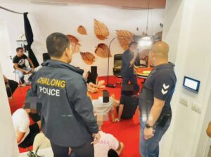 รัสเซีย 7 คน สัญชาติยูเครน 1 คน และสัญชาติคาซักสถาน 1 คน พร้อมด้วยของกลาง เงินสด โต๊ะพนัน ไพ่ ชิปแทนมูลค่าเงิน ฯลฯ นอกจากนี้ยังได้ตรวจยึดอุปกรณ์ดิจิตอลเช่น โทรศัพท์มือถือ และคอมพิวเตอร์ เพื่อดำเนินการขยายผล ตรวจพิสูจน์หาพยานหลักฐานทางอิเล็กทรอนิกส์ต่อไป