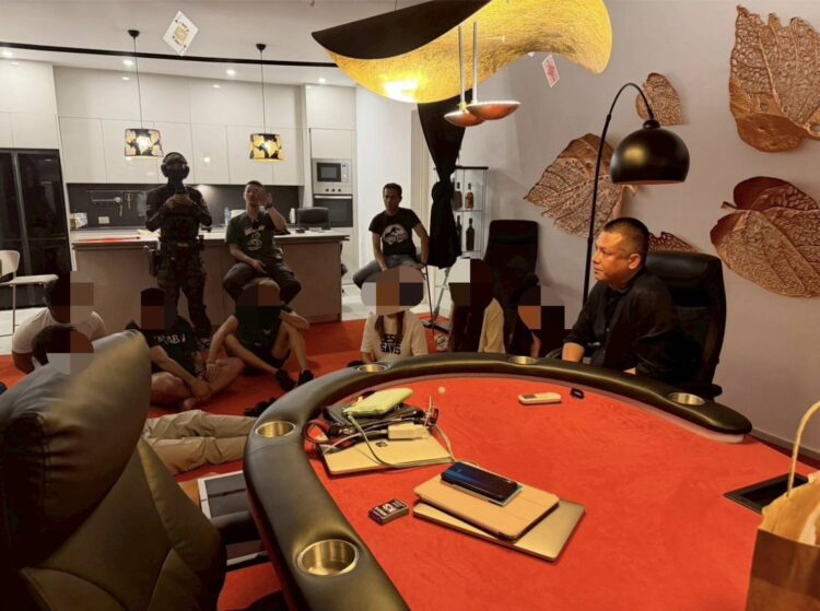ต่อมาวันที่ 11 กุมภาพันธ์ 2569 เจ้าหน้าที่ตำรวจได้รวบรวมข้อมูลการสืบสวน ทราบว่าในวันนี้จะมีการจัดให้มีการเล่นการพนันไพ่โป๊กเกอร์ จากนั้นเจ้าหน้าที่ตำรวจจึงได้วางกำลังรอบบริเวณสถานที่ซึ่งจัดให้มีการเล่นพนันนั้น โดยภายในมีไฟส่องสว่างสามารถมองเห็นผู้คนและสิ่งของได้อย่างชัดเจน โดยเจ้าหน้าที่ตำรวจได้เฝ้าสังเกตดูอยู่จนมั่นใจว่า ภายในสถานที่ดังกล่าวมีการลักลอบเล่นการพนันฯ เอาทรัพย์สินกันจริง จึงได้เข้าทำการจับกุม ผู้ต้องหาจำนวนทั้งสิ้น 9 ราย เป็นต่างชาวต่างชาติ สัญชาติ