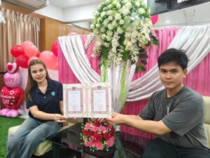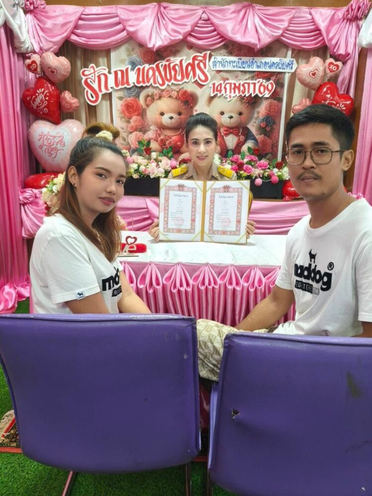 วันนี้ไม่ใช่แค่การจดทะเบียนเพื่อเก็บกระดาษใบเดียว แต่คือการได้รับสิทธิ์ในการดูแลกันและกันอย่างถูกต้องตามกฎหมาย “วันนี้ก็รัก พรุ่งนี้ก็รัก วันต่อๆไปก็รัก นานแค่ไหนก็รัก” ภายในสำนักทะเบียนอำเภอ ถูกเนรมิตเป็นดินแดนแห่งความรัก ด้วยซุ้มดอกไม้ Happy Valentines Day มุม Check in ถ่ายภาพคู่สวยๆ อำนวยความสะดวกโดย ปลัดอำเภอ และเจ้าหน้าที่อำเภอนครชัยศรี พร้อมดูแลให้บริการด้วยรอยยิ้ม