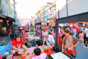 สำหรับบรรยากาศภายในงานคึกคักไปด้วยนักท่องเที่ยว มีการประดับโคมไฟเต็งลั้งสีแดง-ทองตลอดเส้นทาง พร้อมกิจกรรมทางวัฒนธรรม อาทิ