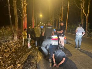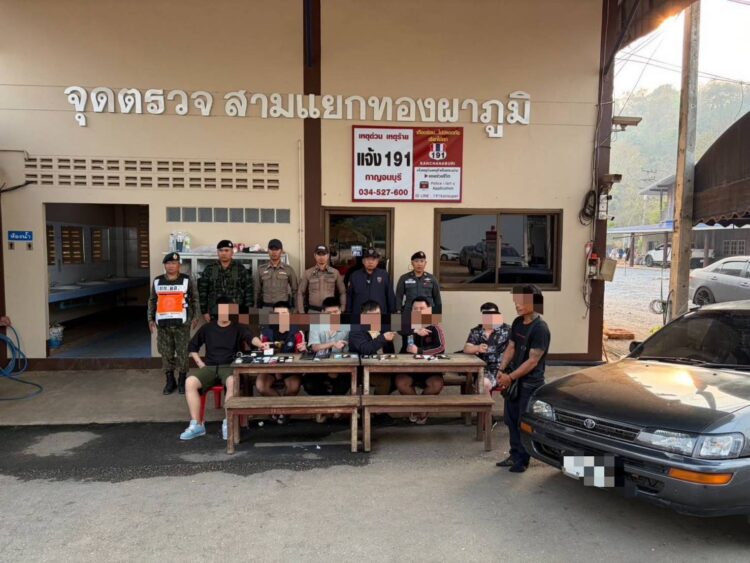 เมื่อเวลาประมาณ 01.00 น.ของวันที่ 18 ก.พ. 2569 เจ้าหน้าที่สนธิกำลังทั้งตำรวจ สภ.ทองผาภูมิ ทหาร ฉก.ลาดหญ้า ตชด.135 และฝ่ายปกครอง โชว์ผลงานจับกุมแก๊งขนต่างด้าวขณะตั้งด่านตรวจร่วมสามแยกทองผาภูมิ โดยพบรถเก๋งโตโยต้า สีเขียว ขับมุ่งหน้าไปทาง อ.สังขละบุรี ท่าทางมีพิรุธจึงเรียกตรวจ