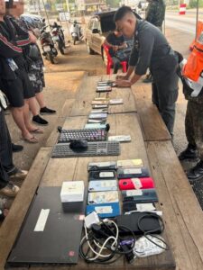 ฝ่ายความมั่นคงกาญจนบุรี สกัดเก๋งต้องสงสัยที่สามแยกทองผาภูมิ พบชายพม่าขนวัยรุ่นจีนมุ่งหน้าอำเภอสังขละบุรี ค้นภายในรถเจออุปกรณ์ทำงานคอลเซ็นเตอร์ครบชุด คาดเตรียมส่งทำงานฝั่งพญาตองซู