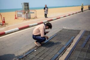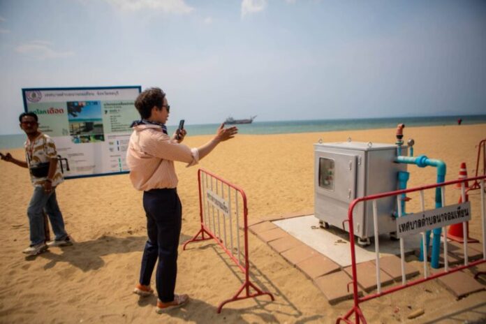 ผู้สื่อข่าวลงพื้นที่ตรวจสอบ พบว่าบริเวณชายหาดดังกล่าวมีโครงสร้างท่อระบายน้ำลักษณะสี่เหลี่ยมขนาดใหญ่ โผล่พ้นทรายกลางชายหาด ซึ่งเป็นส่วนหนึ่งของโครงการเครื่องบำบัดน้ำชายหาด โดยมีดินทรายปกคลุมตัวท่อไว้บางส่วน สร้างความแปลกใจให้กับประชาชนและนักท่องเที่ยวที่มาพักผ่อนในพื้นที่