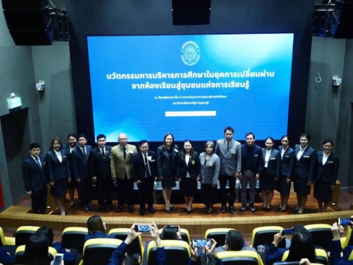 22 กุมภาพันธ์ 2569 นักศึกษา สาขาวิชาบริหารการศึกษา มหาวิทยาลัยราชภัฏกาญจนบุรี จัดสัมมนาในหัวข้อ นวัตกรรมการบริหารการศึกษาในยุคแห่งการเปลี่ยนผ่าน “จากห้องเรียนสู่ชุมชนแห่งการเรียนรู้” เป็นการเปลี่ยนสถานศึกษาจาก “สถานที่สอนหนังสือ” ให้กลายเป็น “พื้นที่สร้างสรรค์ปัญญา” ที่ทุกคนในสังคมมีส่วนร่วม เพื่อสร้างพลเมืองที่พร้อมสำหรับโลกอนาคตอย่างมีคุณภาพ