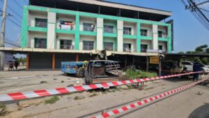 เมื่อเวลา 06.30 น. ( 23 กุมภาพันธ์ 2569 ) พ.ต.ท.สิทธาวัชร์ ชวกรเธียรรัตน์ สว.(สอบสวน) สภ.บางละมุง ได้รับแจ้งเหตุ มีรถพ่วง 18 ล้อ พุ่งชนอาคารบ้านเรือนประชาชน มีผู้ได้รับบาดเจ็บ เหตุถนนคู่ขนานทางหลวงหมายเลข 7 (ถนนมอเตอร์เวย์ ) บ้านนาวัง หลัก กม.112+600-700 ม.4 ต.ตะเคียนเตี้ย อ.บางละมุง จ.ชลบุรี หลังรับแจ้งจึง รีบรุดไปทำการตรวจสอบ พร้อมด้วยหน่วยกู้ภัยมูลนิธิสว่างบริบูรณ์ธรรมสถาน เมืองพัทยา
