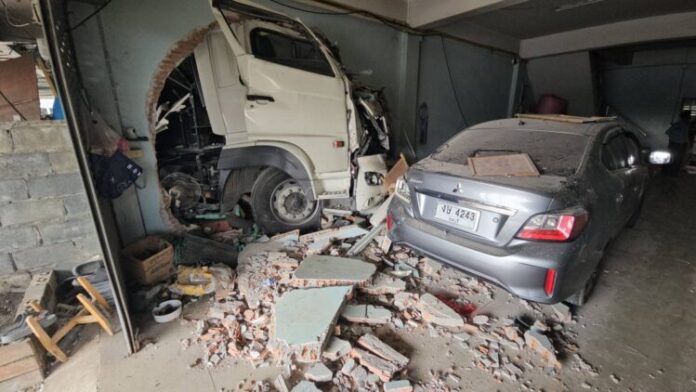 พ.ต.ท.สิทธาวัชร์ ชวกรเธียรรัตน์ สว.(สอบสวน) สภ.บางละมุง เปิดเผยว่า ในเบื้องต้นพบว่า ตัวอาคารได้รับความเสียหายอย่างหนัก จนเสาปูนคานกลางเกิดรอยร้าว โดยเกรงว่าตัวอาคารจะเกิดการทรุดตัวพังถล่มลงมา เบื้องต้น จึงมีการกันพื้นตัวอาคาร เป็นพื้นที่อันตรายและให้ผู้พักอาศัยอาศัยอยู่ภายในตัวอาคารดังกล่าว ออกมาอยู่ด้านนอกชั่วคราว จนกว่าจะมีเจ้าหน้าที่วิศวกร จังหวัดชลบุรีเข้ามาตรวจสอบอย่างละเอียด ส่วนสาเหตุในครั้งนี้ คาดว่าคนขับน่าจะหลับใน แต่อย่างไรก็ตาม จะเรียกคนขับมาทำการสอบสวนเพื่อหาสาเหตุที่แท้จริงต่อไป….