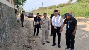 นายปรเมศวร์ งามพิเชษฐ์ นายกเมืองพัทยา พร้อมด้วย มาโนช หนองใหญ่ รองนายกเมืองพัทยา ลงพื้นที่ติดตามความคืบหน้าการยกระดับผิวถนนพร้อม