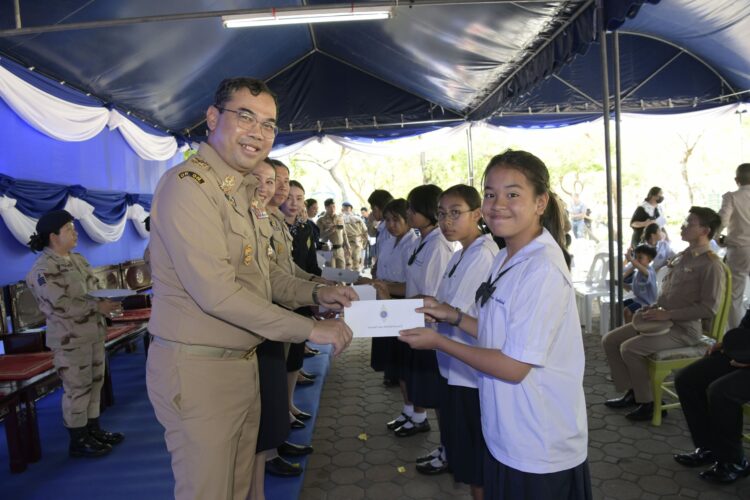 มหาดไทยให้แก่บุตรสมาชิกกองอาสารักษาดินแดน และบุตรข้าราชการ/พนักงาน/ลูกจ้าง สังกัดกระทรวงมหาดไทย จากนั้น เป็นการสวนสนามของกองอาสารักษาดินแดน พร้อมอ่านสารผู้