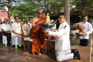 โดยมี นายพิชัยยา ตุระซอง และ นายนันทวิทย์ นาคแสง รองผู้ว่าราชการจังหวัดร้อยเอ็ด, นางพัชรินทร์ ตุระซอง รองนายกเหล่ากาชาดจังหวัดร้อยเอ็ด, นายศฎายุช ไชยะลาด นายอำเภอเมืองร้อยเอ็ด, ดร.รณวริทธิ์ ปริยฉัตรตระกูล นายกองค์การบริหารส่วนตำบลเหนือเมือง พร้อมหัวหน้าส่วนราชการ ผู้นำท้องถิ่น และพุทธศาสนิกชนเข้าร่วมงานเป็นจำนวนมาก
