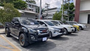 พร้อมตรวจยึดของกลางรถยนต์รวม 5 คัน ได้แก่