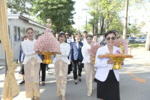 อร่ามศรี รองผู้ว่าราชการจังหวัดนนทบุรี นางสาวสะอาด พิมพ์สมบูรณ์ นายอำเภอไทรน้อย แพทย์หญิงมาลี สิริสุนทรานนท์ ผู้อำนวยการโรงพยาบาลไทรน้อย ดร.ฉลวย ขันจำนงค์ อดีตนายกองค์การบริหารส่วนตำบลไทรใหญ่ และภาคีเครือข่ายภาคส่วนต่างๆ เข้าร่วมพิธี