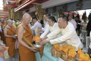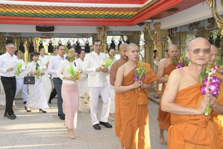 มาฆบูชา โดยมี นางจิราภรณ์ โมสิกรัตน์ นายกเหล่ากาชาดจังหวัดนนทบุรี นางสาวปาณิสรา กาญจนะจิตรา นางระวีพรรณ แก้วเพียงเพ็ญ รองผู้ว่าราชการจังหวัดนนทบุรี พ.อ.ชัยวิชิต กิจนำชัย รอง