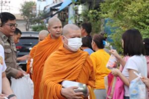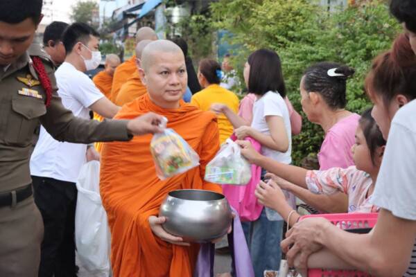 บรรยากาศยามเช้าที่สงบและอบอุ่น พร้อมกันนี้ยังได้มีดารานักแสดงบิณฑ์ บรรลือฤทธิ์ พร้อมทีมงานมูลนิธิร่วมกตัญญู มาร่วมกิจกรรมเป็นลูกศิษย์ช่วยเหลือเดินรับบิณฑบาตกับคณะสงฆ์ของวัดบางพลีใหญ่กลาง ในครั้งนี้ด้วย