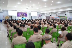 ผู้ใหญ่บ้าน แพทย์ประจำตำบล สารวัตรกำนัน ผู้ช่วยผู้ใหญ่บ้าน พร้อมรับชมวิดีทัศน์บรรยายสรุปข้อมูลของอำเภอบ้านโพธิ์โดยสังเขป จากนั้นผู้ว่าราชการจังหวัดฉะเชิงเทรา มอบนโยบายและแนวทางการปฏิบัติราชการ ซึ่งมีกำนัน ผู้ใหญ่บ้านฯลฯ ผู้นำองค์กรปกครองส่วนท้องถิ่น ที่รู้คน รู้พื้นที่ เป็นกลไกสำคัญในการขับเคลื่อนภารกิจงานที่สำคัญในพื้นที่ โดยมี นายพีรพล ลือล่า ปลัดจังหวัดฉะเชิงเทรา นายฤกษ์ฤทธิ์ บุญยัง ผู้อำนวยการกลุ่มงานศูนย์ดำรงธรรมจังหวัด นายโกศล อินทรศร จ่าจังหวัดฉะเชิงเทรา นายพรเทพ อาจบัณฑิตกุล ป้องกันจังหวัดฉะเชิงเทรา หัวหน้าส่วนราชการ ผู้บริหารองค์กรปกครองส่วนท้องถิ่น เข้าร่วมรับฟัง