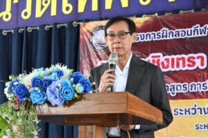 ในพิธีเปิดโครงการฝึกสอนกีฬาฟุตบอลเพื่อเยาวชนจังหวัดฉะเชิงเทรา “อบจ.ฉะเชิงเทรา ฟุตบอล อะคาเดมี่” รุ่นที่ 2 พร้อมด้วยคณะผู้บริหาร สมาชิกสภาองค์การบริหารส่วนจังหวัดฉะเชิงเทรา หัวหน้าส่วน