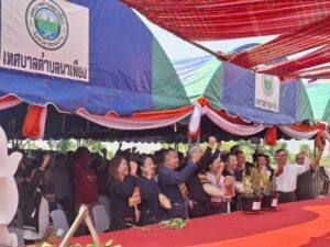 เมื่อวันที่ 18 มีนาคม 2569 ที่ตำบลนาเพียง อำเภอชุมแพ จังหวัดขอนแก่น นางสาวอ้อยใจ คำบุญเรือง นายอำเภอชุมแพ ร่วมมือกับมูลนิธินโยบายสาธารณะไทย เป็นประธานในการให้ความรู้กับชุมชน ในการทำธนาคารน้ำใต้ดิน และสนับสนุนการต่อยอดความมั่นคงด้านเศรษฐกิจให้กับคนชุมชนโดยมีการสนับสนุน ทำแปลงทดลองปลูกถั่วเหลืองในพื้นที่ เพื่อร่วมกับหน่วยงานอื่นๆ โดยใช้ชื่อ “