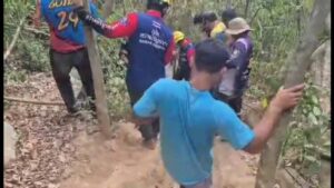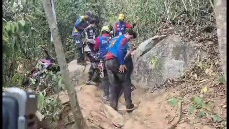 เจ้าหน้าที่กู้ภัยมูลนิธิสว่างบริบูรณ์ธรรมสถานเมืองพัทยา พร้อมกำลังอาสาสมัคร ระดมอุปกรณ์ช่วยชีวิต เดินเท้าเข้าพื้นที่ทุรกันดารบริเวณเนินหมาหอบ ใกล้อ่างเก็บน้ำห้วยขุนจิต พื้นที่บ้านเขาไม้แก้ว ตำบลห้วยใหญ่ อำเภอบางละมุง จังหวัดชลบุรี หลังได้รับแจ้งเหตุว่า มีชาวต่างชาติประสบอุบัติเหตุจากการขับขี่รถจักรยานยนต์ วิบากได้รับบาดเจ็บ