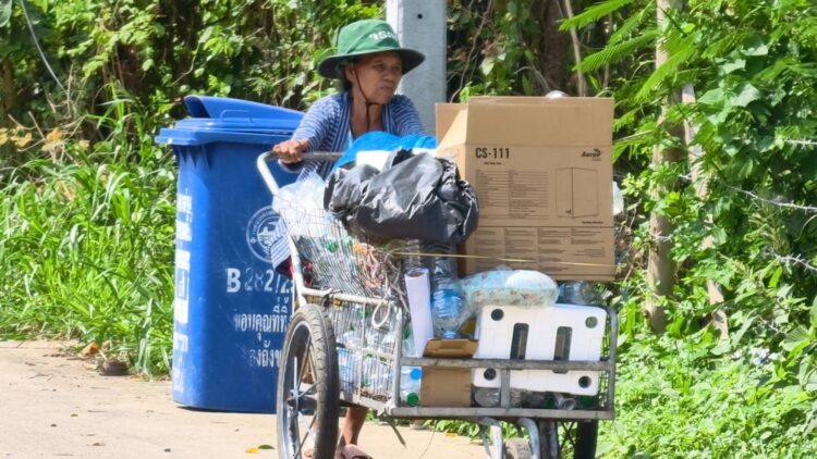 วันที่ 21 มี.ค.69 ผู้สื่อข่าวลงพื้นที่หมู่ 3 ต.สัตหีบ อ.สัตหีบ จ.ชลบุรี พบกับ “นางเตียม เทียมเมือง” อายุ 76 ปี กำลังค่อยๆ เข็นรถเข็นคู่ใจ เดินเก็บขวดและของเก่าตามถนนในชุมชน เพื่อนำไปขายหาเงินเลี้ยงชีพ