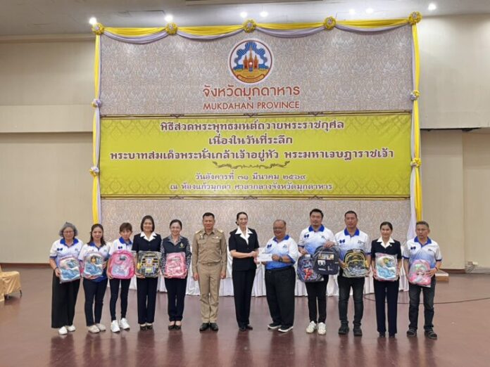 ในการนี้ ได้รับเกียรติจาก นายวรญาณ บุญณราช ผู้ว่าราชการจังหวัดมุกดาหาร และนางอัญชลี กัลมาพิจิตร บุญณราช นายกเหล่ากาชาดจังหวัดมุกดาหาร พร้อมด้วย นางปณิดา พันธ์ุโชติ และนายชลิต ทิพย์คำ รองผู้ว่าราชการจังหวัดมุกดาหาร และหัวหน้าส่วนราชการจังหวัดมุกดาหาร ร่วมเป็นผู้รับมอบสิ่งของดังกล่าว เพื่อนำไปส่งต่อให้แก่นักเรียนและใช้สนับสนุนกิจกรรมด้านสาธารณกุศลของกาชาดจังหวัดมุกดาหาร ต่อไป