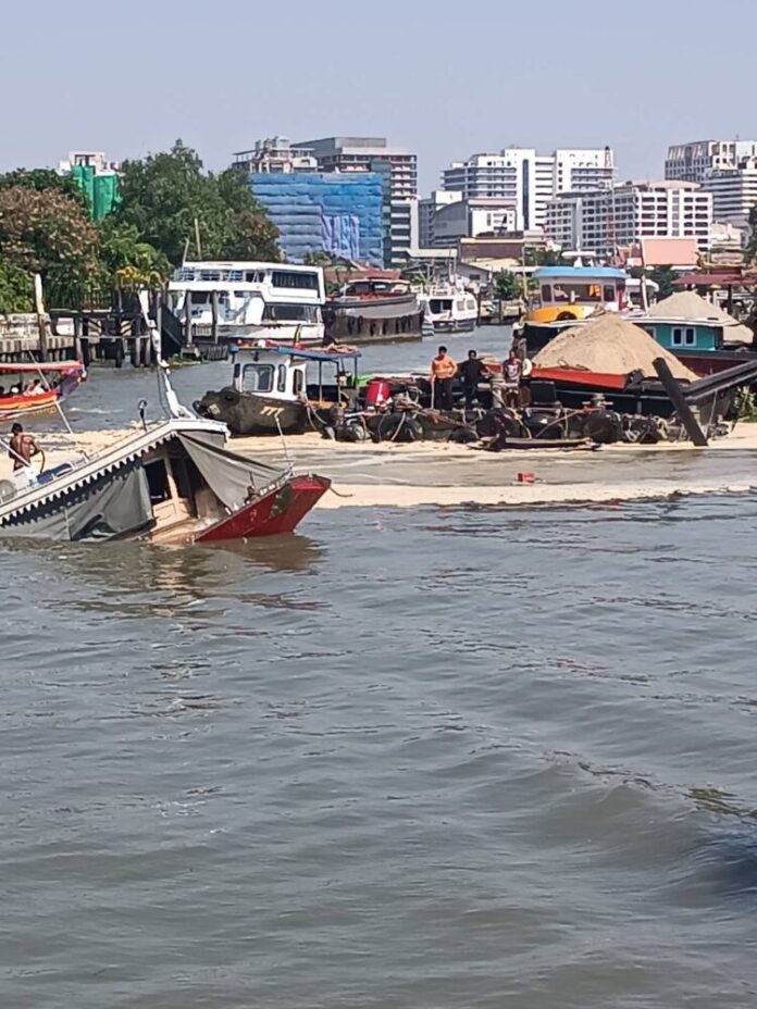 ที่เกิดเหตุพบขบวนเรือลากจูงเรือบรรทุกทราย จำนวน 3 ลำ เดินทางมาจากจังหวัดอ่างทอง เพื่อนำทรายมาส่งในพื้นที่บริเวณวัดสุวรรณ คลองบางกอกน้อย โดยระหว่างปฏิบัติการขนส่ง น้ำได้ทะลักเข้าเรือบรรทุกทรายชื่อ “ไทยบาจ 9” ส่งผลให้เรือค่อย ๆ จมลงกลางร่องน้ำ