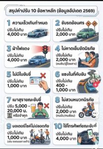 1. ความเร็วเกินกำหนดปรับไม่เกิน 4,000 บาท