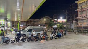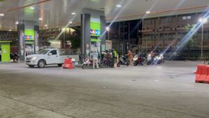 บรรยากาศภายในปั๊มน้ำมันเป็นไปอย่างคึกคัก โดยมีรถต่อคิวยาวหลายช่องจ่ายน้ำมัน ขณะที่พนักงานเร่งให้บริการเพื่อรองรับปริมาณผู้ใช้บริการที่เพิ่มขึ้นอย่างรวดเร็ว