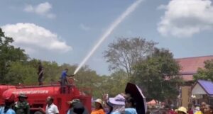 ณ โรงเรียนมัธยมพระราชทานนายาว ต.ท่ากระดาน อ.สนามชัยเขต จ.ฉะเชิงเทรา ที่เล่นกันอย่างสนุกสนานคึกคักท่ามกลางแดดร้อนจัดแต่ไม่มีเหนื่อยจนเจ้าหน้าที่ดับเพลิงต้องมาช่วยฉีดน้ำคลายร้อนเพิ่มความสนุกสนานเสมือนได้เล่นน้ำสงกรานต์
