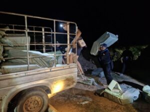 ชำนาญในพื้นที่ จากการตรวจสอบ พบเป็น บุหรี่ที่ไม่ผ่านพิธีการทางศุลกากรอยู่ท้ายรถยนต์คันดังกล่าว จำนวน 18 กระสอบ, กระสอบละ 2 ลัง, ลังละ 50 คอตตอน, รวม 1,800 คอตตอน และคิดเป็นซองได้ จำนวน 18,000 ซอง มูลค่าความเสียหาย 1,080,000 บาท หน่วยฯ จึงได้ดำเนินการขนย้ายมายัง