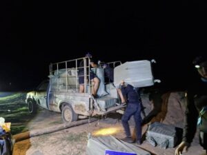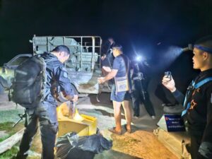 รถยนต์กระบะต้องสงสัย (ไม่ทราบยี่ห้อ และไม่มีป้ายทะเบียน) มาจอดอยู่ริมแม่น้ำโขง และได้เห็นกลุ่มบุคคลกำลังแบกสิ่งของมาจากริมฝั่งแม่น้ำโขงขึ้นมายังรถดังกล่าว จึงได้แสดงตัวขอเข้าตรวจสอบ จากนั้นกลุ่มบุคคลดังกล่าวเห็นว่าเป็นเจ้าหน้าที่ จึงได้วิ่งหลบหนีไปโดยอาศัยความมืดและความ